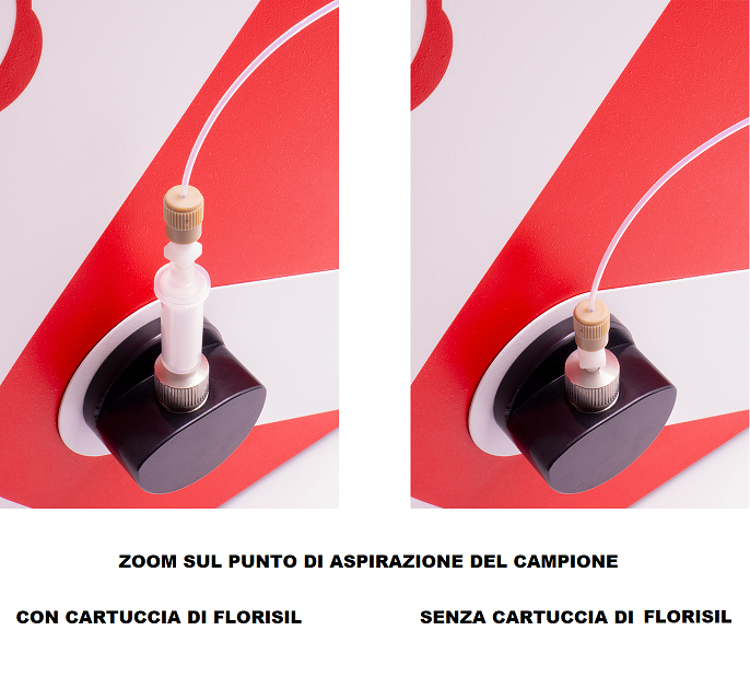 Con l’uso di una cartuccia con attacco Luer precaricata con Florisil, posizionata in serie all’aspirazione del campione, è possibile la distinzione del contenuto di Grassi e degli Olii totali. Grazie alla facilità d’uso delle cartucce precaricate di Florisil, l’Eracheck risulta l’apparato più rapido per l’esecuzione delle determinazioni Total Petroleum Hydrocarbons (TPH) e Total Oil and Grease (TOG) in acqua e terreni.
