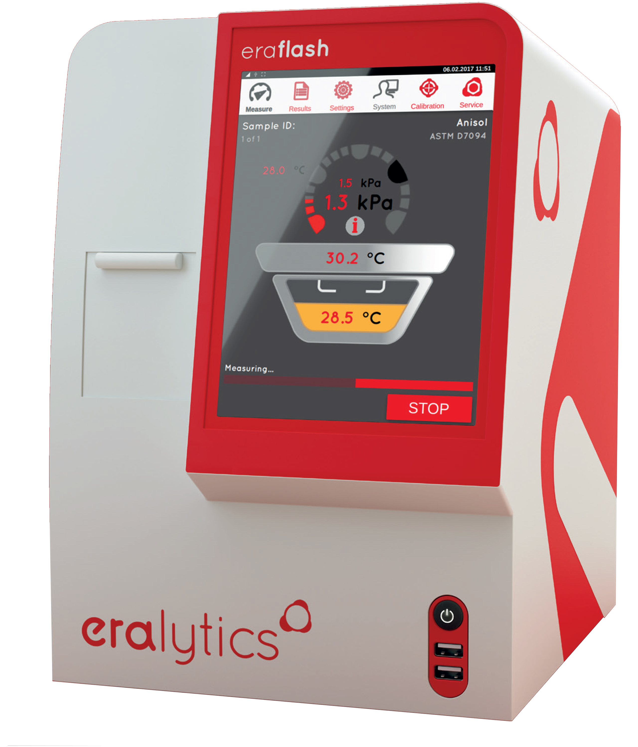 L’apparato ERAFLASH consente la determinazione della temperatura di flash in maniera completamente automatica in stretto accordo con le più recenti normative standard ASTM D6450 e ASTM D7094.