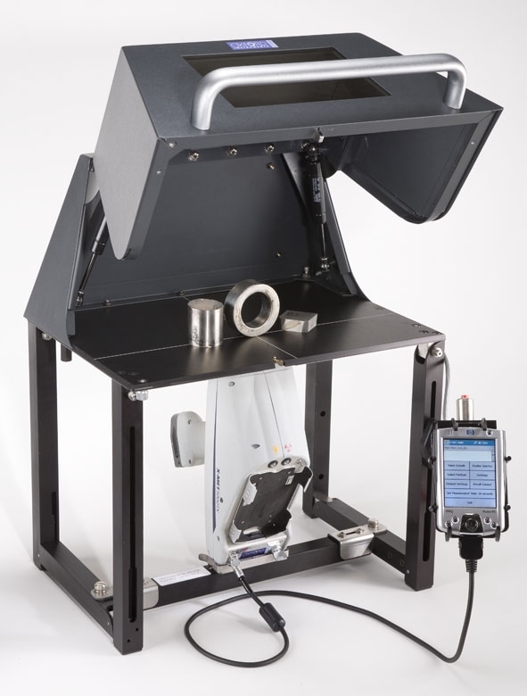 Lo spettrometro X-MET3000TXR+ può essere usato con un nuovo supporto da banco con un ampia camera d’analisi con chiusure di sicurezza. Questo permette di posizionare meglio ampie parti tipiche dei controlli RoHS sulla finestra di misura in tutta sicurezza